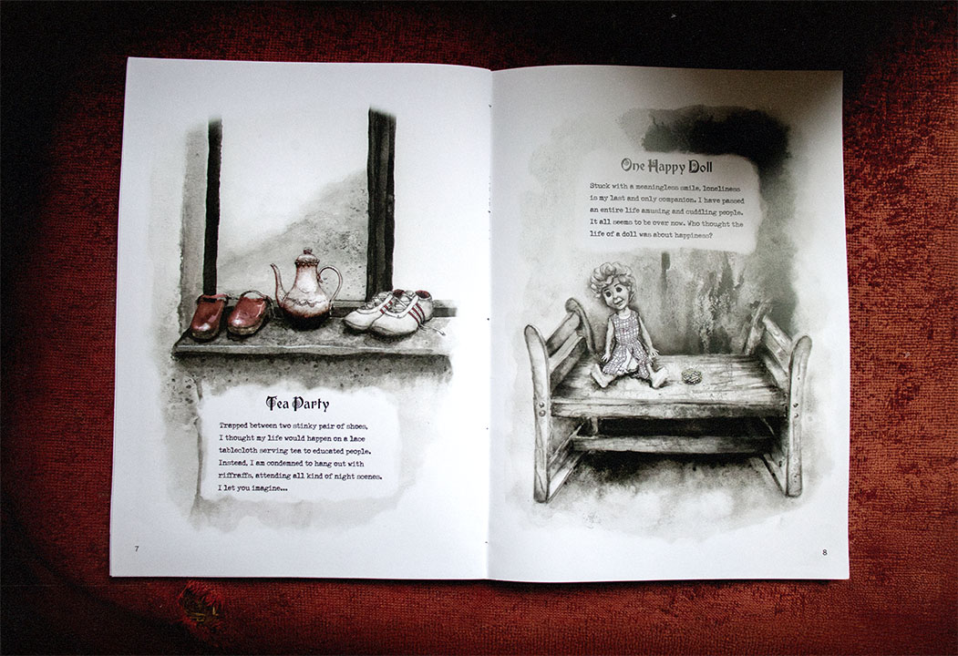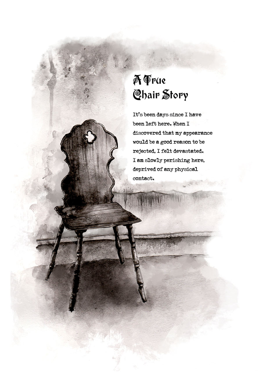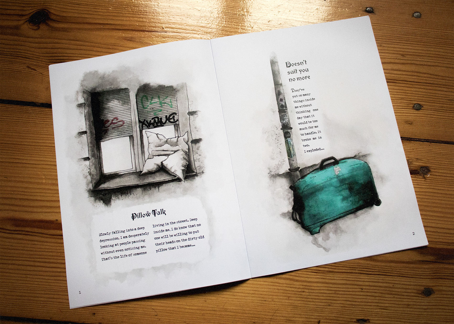is drawing reportage that captures objects left in the street of Berlin and their emotions. Through short fictional stories, the book offers another kind of perspective on the way objects might feel when being abandoned in the street, drawing a parallel to the loneliness that can be felt when living in a city.