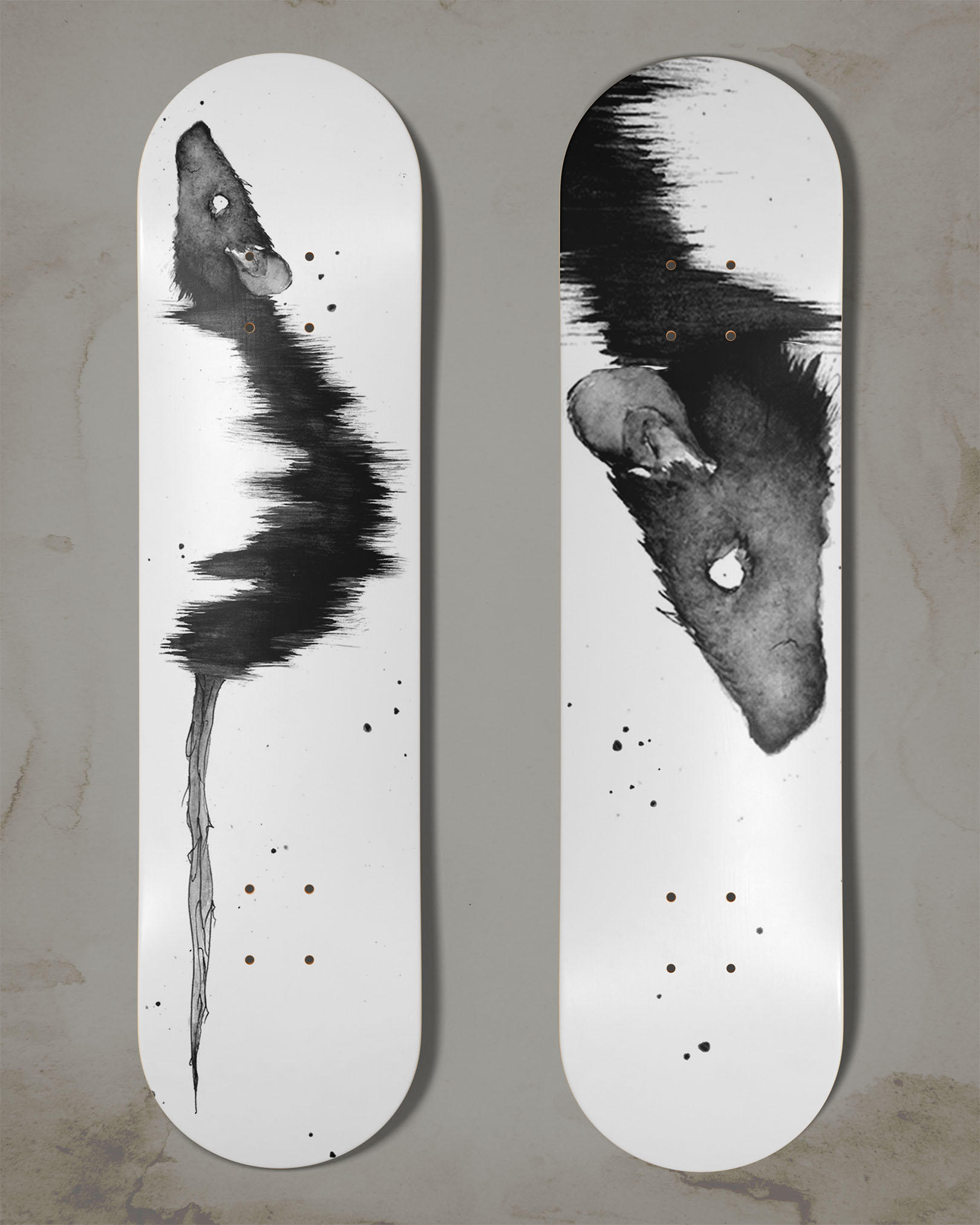 is a combination of a watercolor paint with a 3D model of a medical mask. The texture covering the whole artwork is an excerpt from a newspaper, highlighting the climate of fear and anxiety that prevailed during the COVID period. Created to be printed out, the artwork has been converted into a vinyl mock-up.
