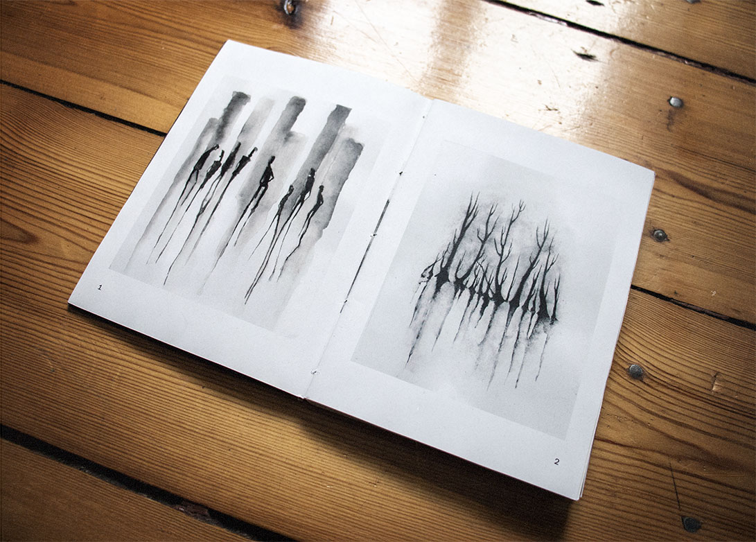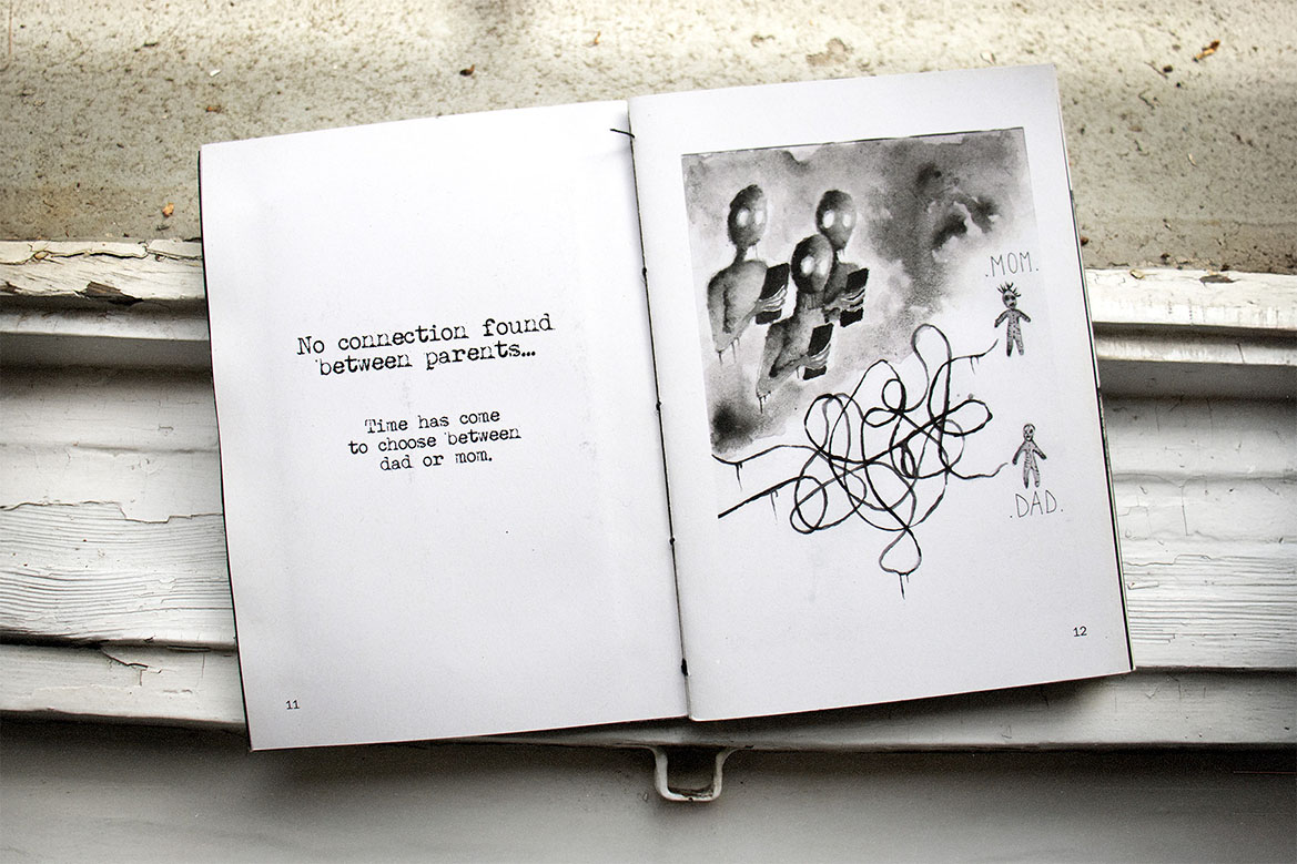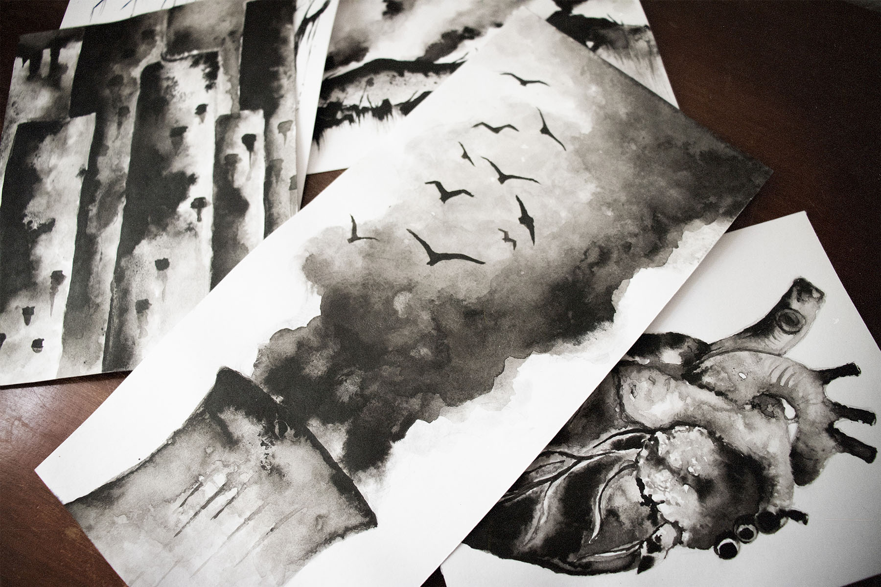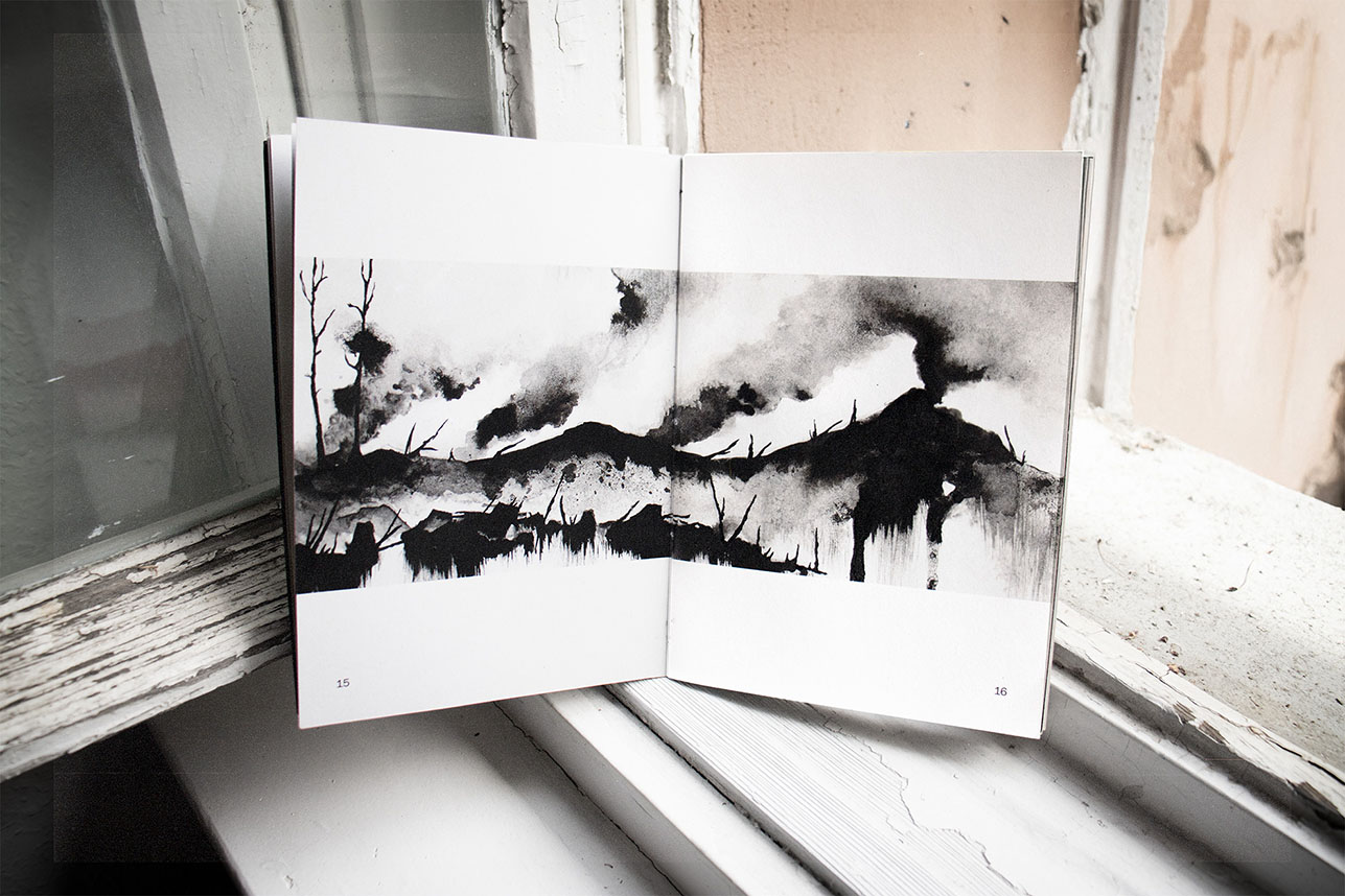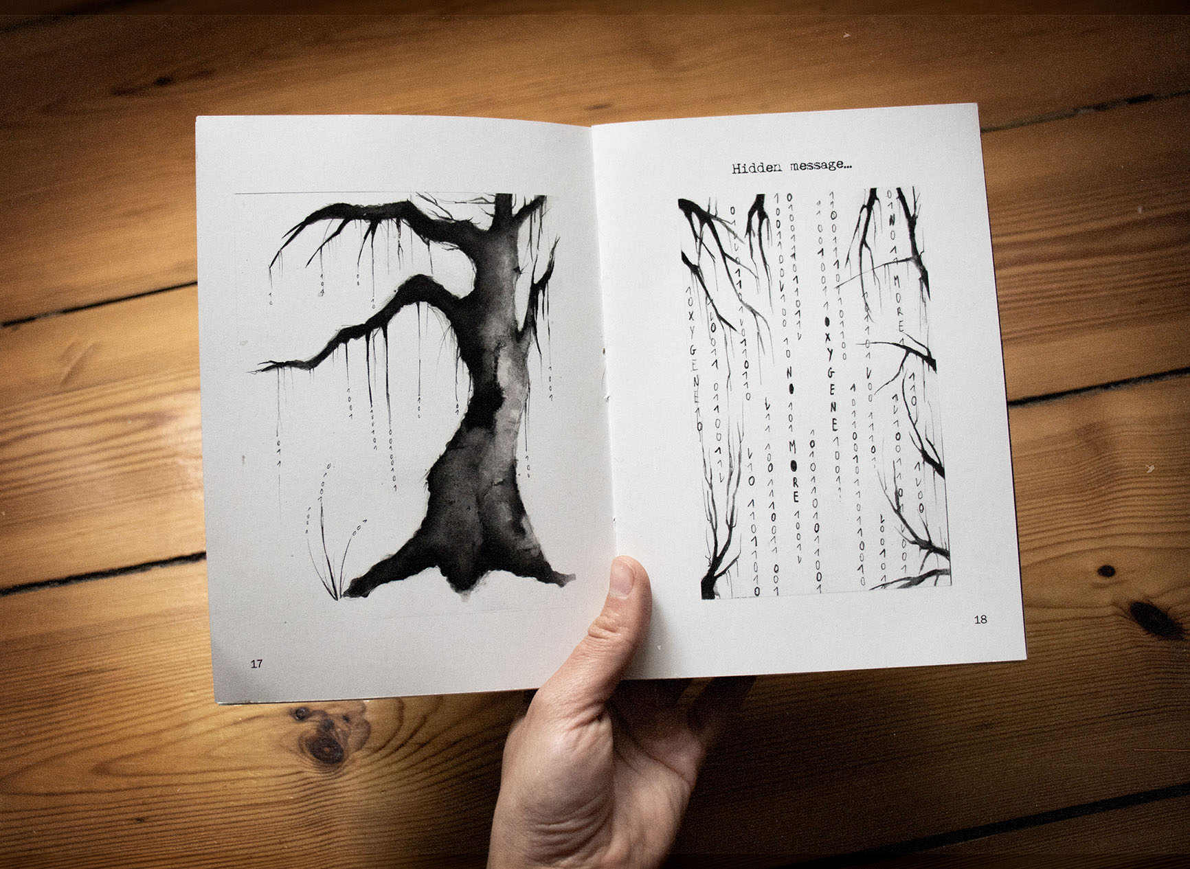 is an interactive illustration book that bridges the theme of apocalypse and self-introspection. Created primarily with black ink, each paintings call for a reflection on the social and environmental state of the Earth. Through depictions of collapsing nature and unreal characters, the book highlights the loneliness that can be felt within society. Mini-games have been designed and integrated into some of the pages to enhance immersion in the story.